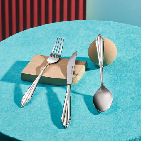 Karaca Mantilla 84-Piece 316+ Stainless Steel Cutlery Set for 12 People, Silver