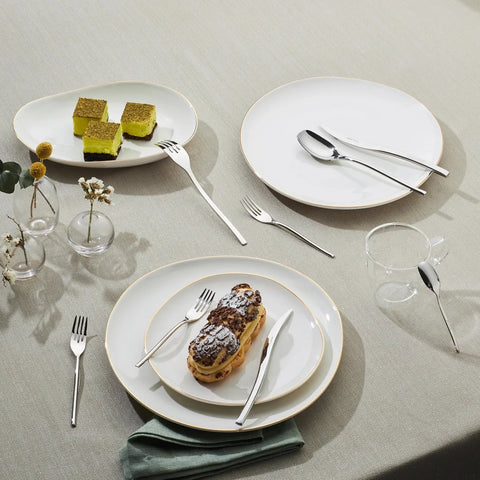 Karaca Moongate 84-Piece 316+ Stainless Steel Cutlery Set for 12 People, Silver