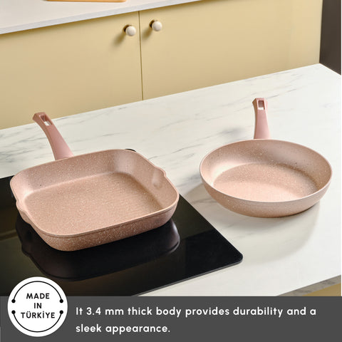 Karaca Biogranite Steel Plus 3 Piece Non-Stick Turkish Coffee Pot Set with Stand, Grey