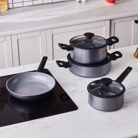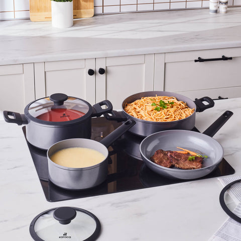 Karaca Swiss Crystal Fancy 7-Piece Ceramic Non-Stick Induction Cookware Set, Black