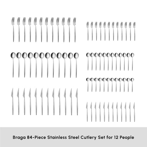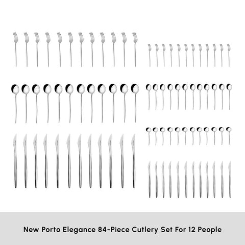 Karaca New Porto Elegance 84-Piece Stainless Steel Cutlery Set for 12 People, Silver