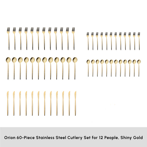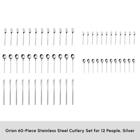 Karaca Lizbon 60-Piece Stainless Steel Cutlery Set for 12 People, Platinum