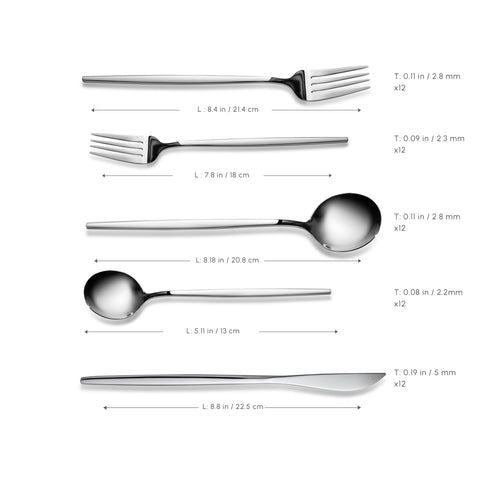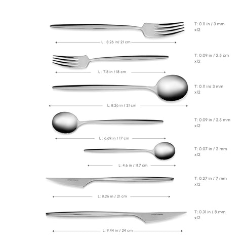 Karaca Mild 84-Piece 316+ Stainless Steel Cutlery Set for 12 People, Silver