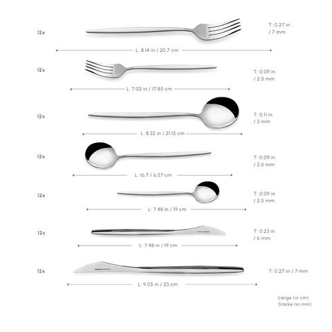 Karaca Stark 84-Piece 316+ Stainless Steel Cutlery Set for 12 People, Silver