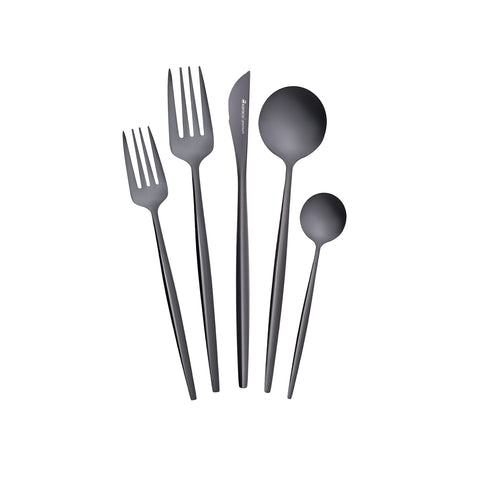 Karaca Orion 30-Piece Stainless Steel Cutlery Set for 6 People, Shiny Black