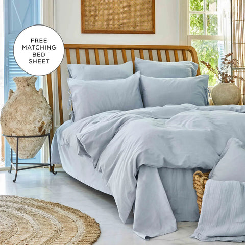 Karaca Home 4 Elements 100% Turkish Cotton Duvet Cover Set with Bed Sheet, Double, Blue