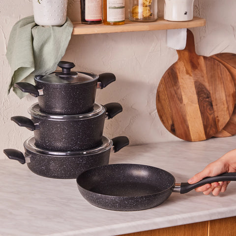 Karaca Emirgan XL 10-Piece Stainless Steel Induction Cookware Set with Storage Container, Silver Red