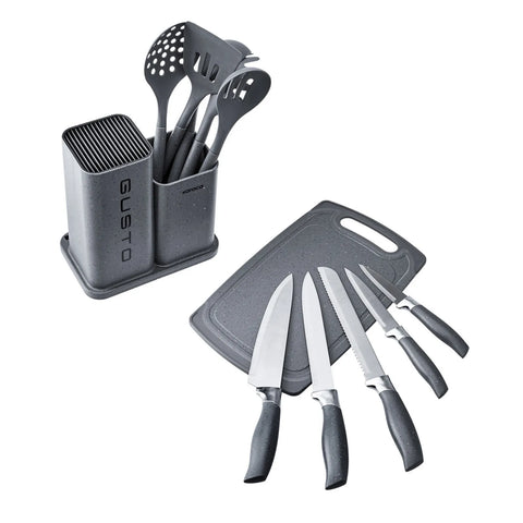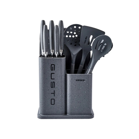 Karaca Gusto 12 Piece Knife Block Set, Kitchen Utensil Set with Block and Chopping Board, Grey