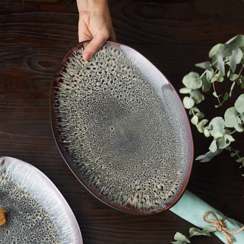 Karaca 2 Piece Galactic Reactive Glaze Pasta Bowl Set for 2 People, 600ml, Black Multi