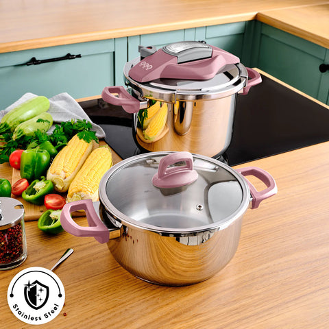 Karaca Quick and Safe 2-Piece Stainless Steel Induction Pressure Cooker Set, 4L+6L, Black Silver