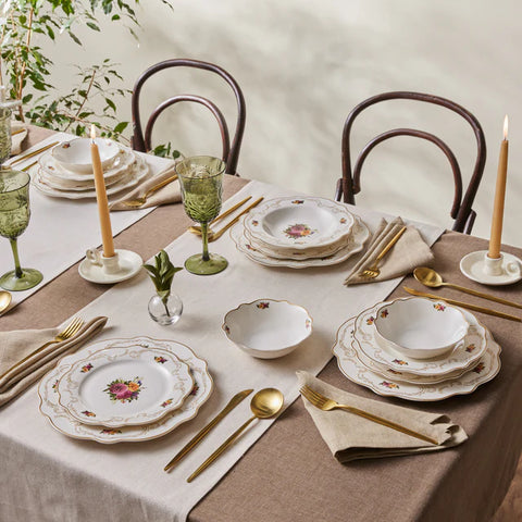 Karaca Red Carpet Collection Stream Bone China New Saturn 59-Piece Dinner Set for 12 People, White Gold