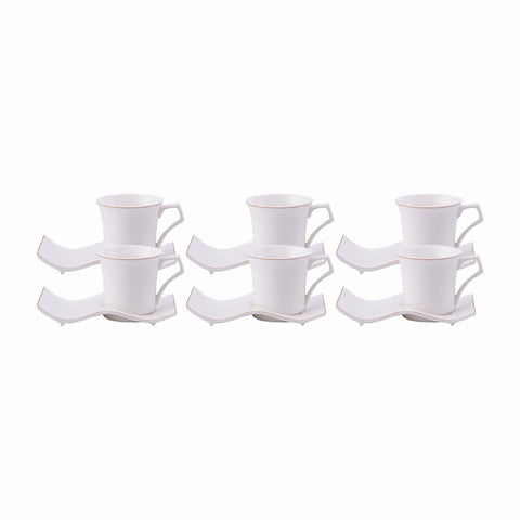 Karaca Nazende 12 Piece Porcelain Espresso Turkish Coffee Cup Set for 6 People, 80ml, White Platinum