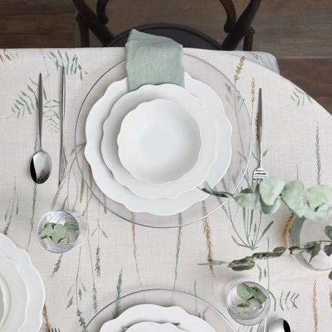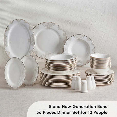 Karaca Red Carpet Collection Stream Bone China New Saturn 59-Piece Dinner Set for 12 People, White Platinum