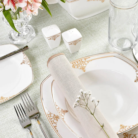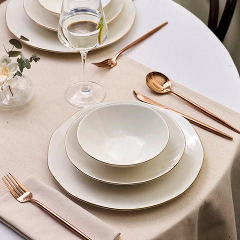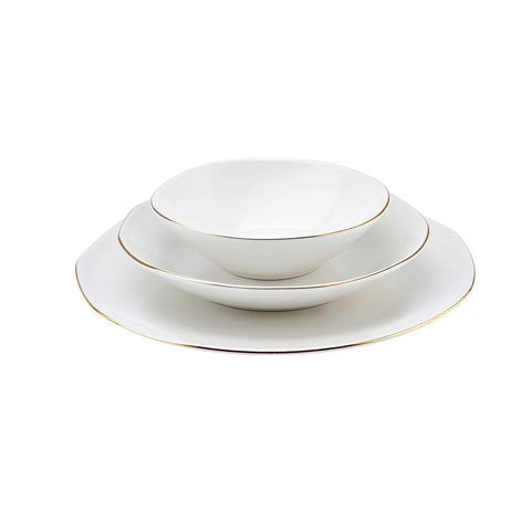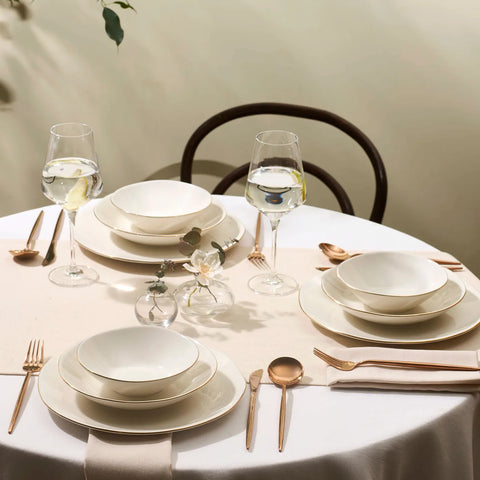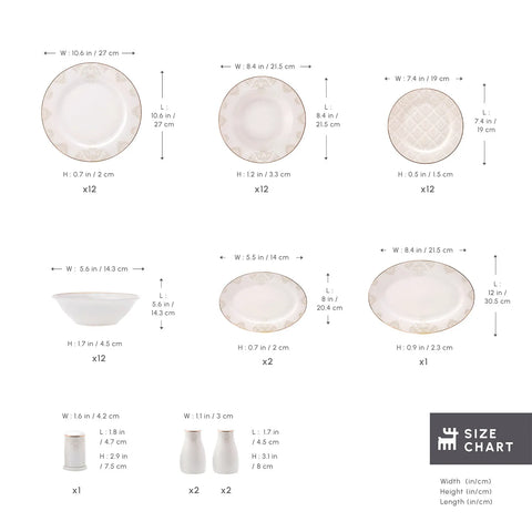Karaca Red Carpet Collection Stream Bone China New Saturn 59-Piece Dinner Set for 12 People, White Gold