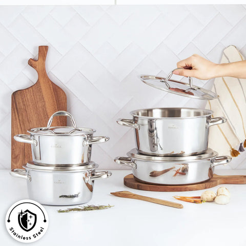 Karaca 3Ply PowerSteel 8-Piece 316+ Stainless Steel Induction Cookware Set, Silver