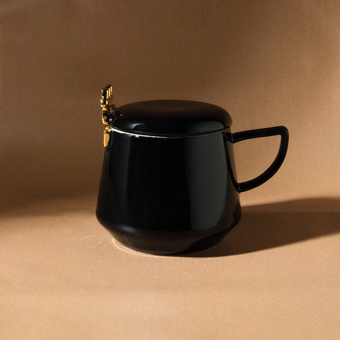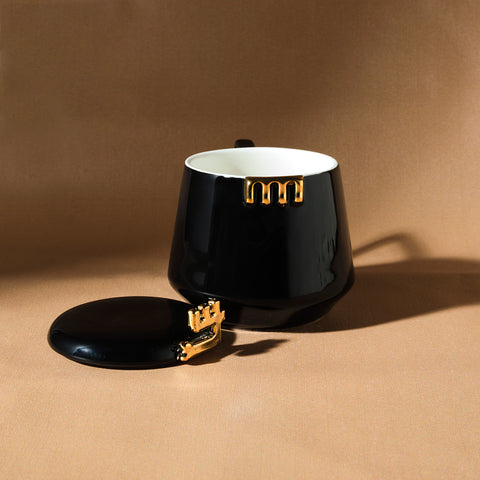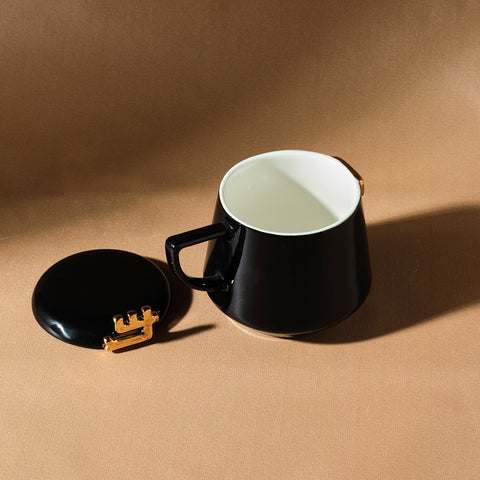 Karaca 50th Anniversary Collection New Generation Bone Mug with Lid, 350ml, Black