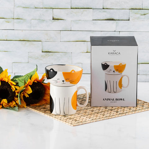 Karaca Animal Stoneware Bowl and Mug Set, 483ml, Multi