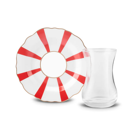 Karaca Astley 12-Piece Tea Glass and Saucer Set for 6 People, 110ml, Red