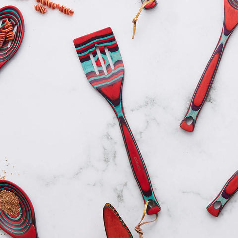Karaca Bailando Pakka Wood Slotted Turner, 30cm, Red Multi