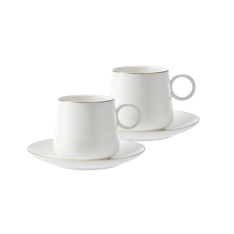 Karaca Ball 4 Piece Porcelain Tea Cup and Saucer Set for 2 People, 220ml, White Platinum