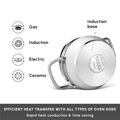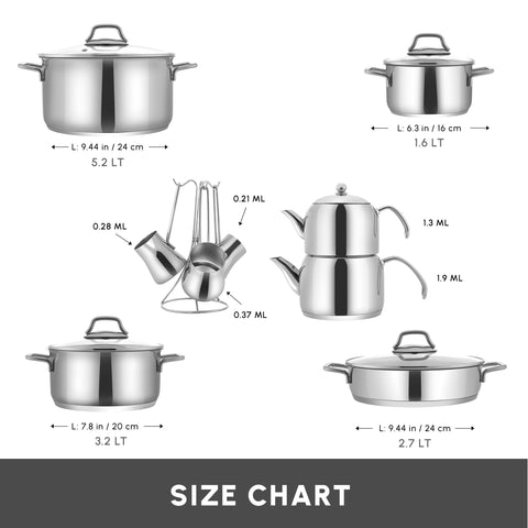 Karaca Belgrad 15-Piece Complete Stainless Steel Kitchen Cookware Set, Silver