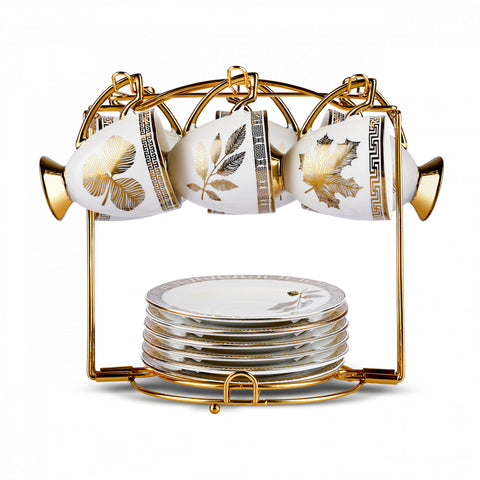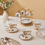 Karaca Betty 12-Piece Bone China Turkish Coffee Cup Set with Stand for 6 People, 85ml, White