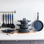 Karaca BioDiamond Powerful 13-Piece Cookware Set with Kitchen Utensil Set, Black