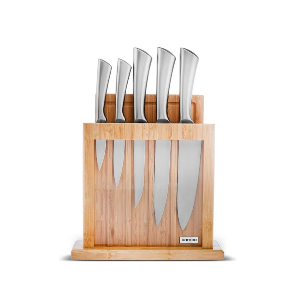 The Karaca Blackgold Biogranite pots and pans set brings elegance and convenience to your kitchen. This versatile non-stick cookware set includes stockpots with lids, a shallow casserole, a frying pan, and essential utensils—perfect for everyday cooking and diverse culinary creations.
