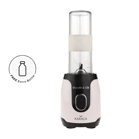 Karaca Blendfit Go Personal Smoothie Blender, 2x600ml Bottle, 550W, Retro Cream