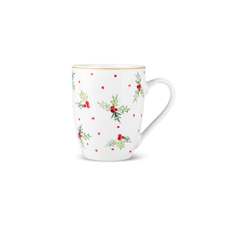 Karaca New Year Christmas Butcher's Broom Red Dot Mug, 350ml, Multi