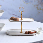 Karaca Calvin Ceramic 2-Tier Cake Stand, 28cm, White Gold