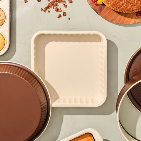 Karaca Chocolate Cream Stainless Steel Square Cake Tin, 24cm, Brown Cream