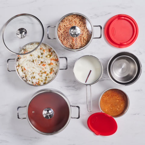 This cookware set is dishwasher safe and microwave safe, offering ultimate convenience after every meal. Crafted from high-quality stainless steel, it is durable and built to last, providing a reliable cooking set for everyday use.