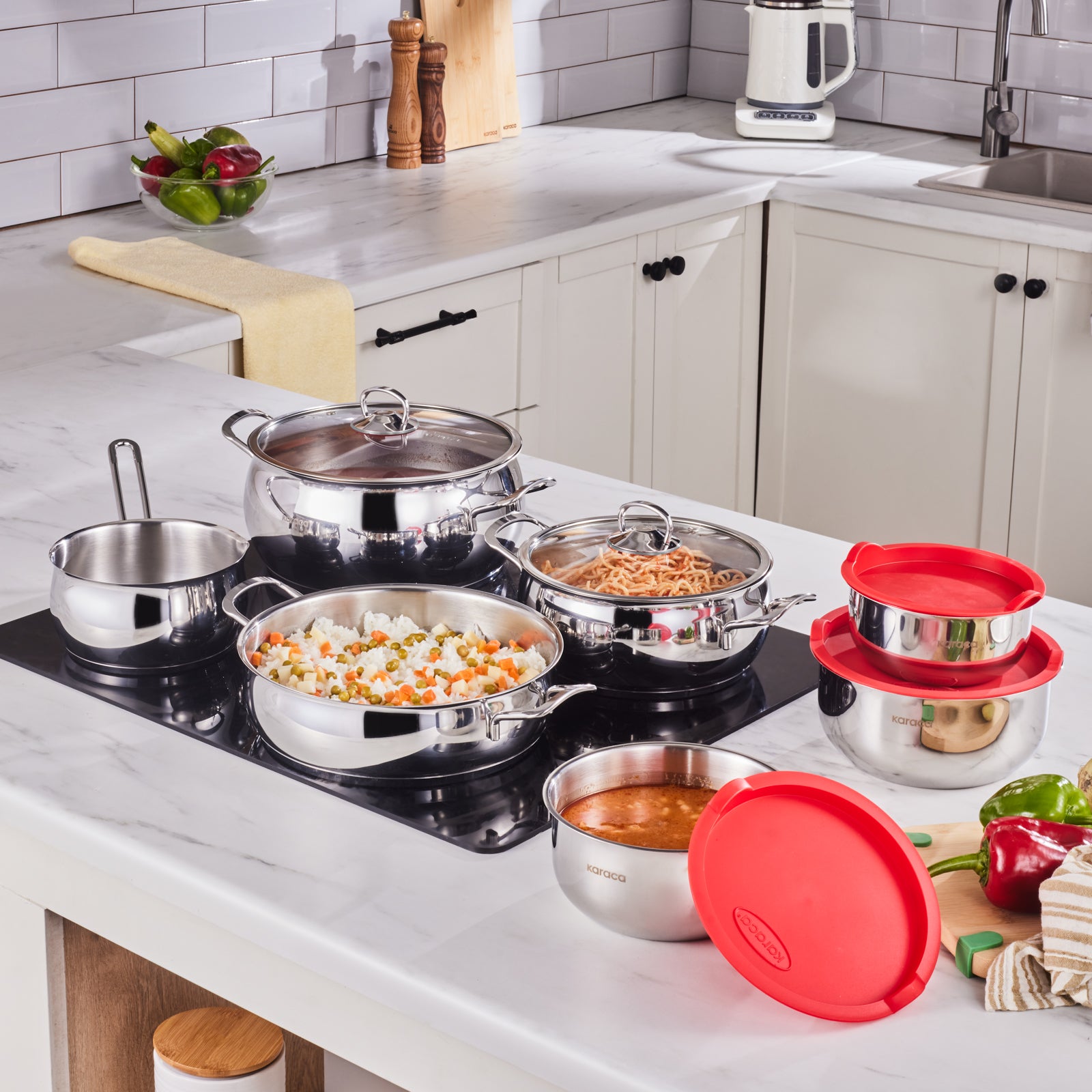 Karaca Cook & Store 13-Piece Stainless Steel Induction Cookware Set, Silver