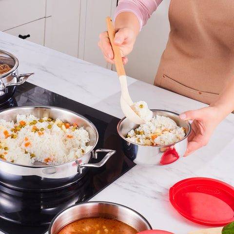 The Karaca Cook & Store 13-Piece Stainless Steel Induction Cookware Set distributes heat evenly across all sides, enhancing the flavour of your dishes while retaining warmth for longer. This efficient design saves both time and effort during your daily cooking. With durable stainless steel construction, this stainless steel pots and pans set ensures long-lasting performance.