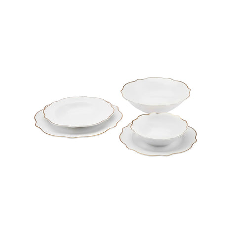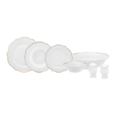 Indulge in the durability, elegance, and completeness of our White and Gold-rimmed Porcelain Dinner Set. Elevate your dining occasions with its captivating design and enjoy the convenience of its practical features. Make a statement with this exceptional collection by Karaca and create unforgettable dining experiences.