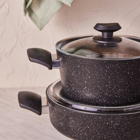Karaca Defne Biogranite 7-Piece Non-Stick Cookware Set, Black
