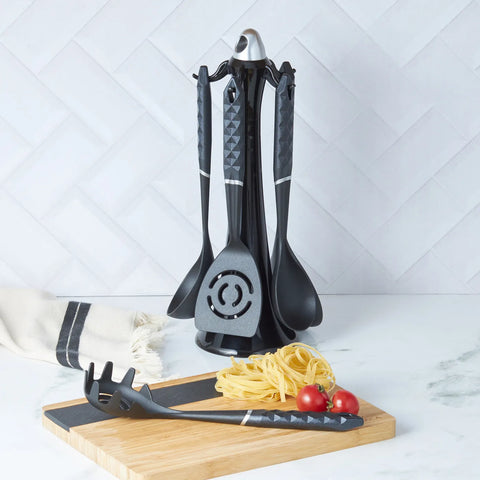 Karaca Diamond 5 Piece Kitchen Utensil Set with Stand, Multi