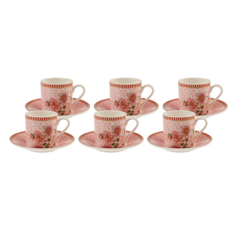 Karaca Diyara Porcelain Espresso Turkish Coffee Cup for 6 People, 12 Piece, 80ml, Pink Multi