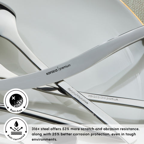 Karaca Dora 84-Piece 316+ Stainless Steel Cutlery Set for 12 People, Silver