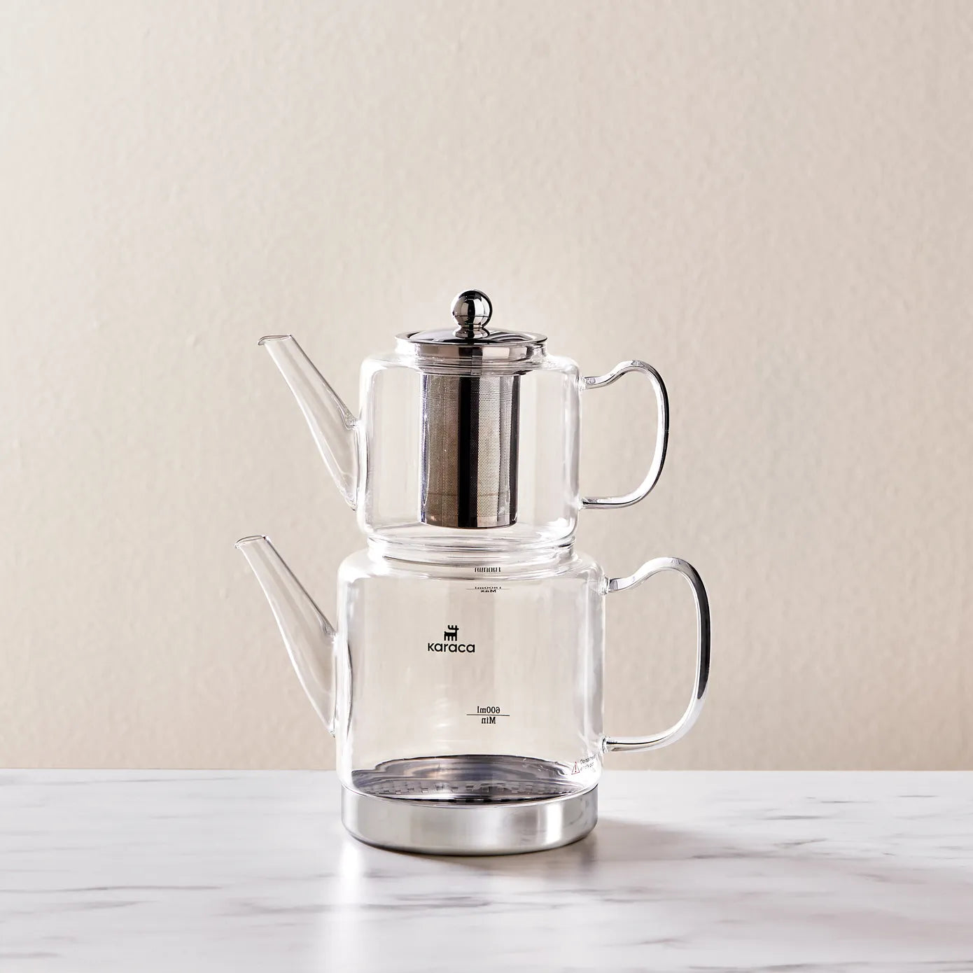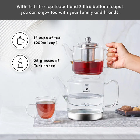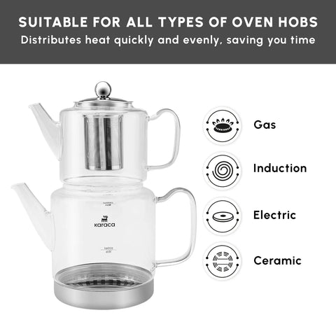 Karaca Dora Borosilicate Glass Induction Teapot Set, Xlarge, Clear