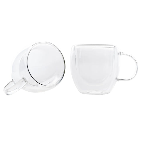 Karaca Double Wall Borosilicate Glass Cup Set with Handle for 2 People, 150ml, Clear