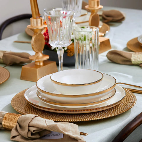 Karaca Eclipse 57-Piece Bone China Dinner Set for 12 People, White Gold