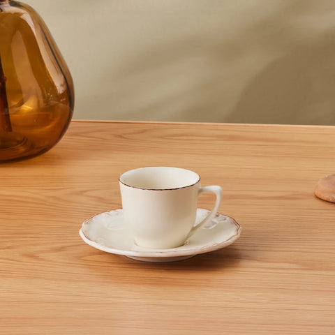 Karaca Elizabeth Ceramic Tea Cup and Saucer Set, 180ml, Ecru