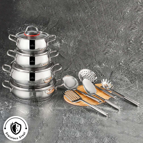 Karaca Emirgan 13-Piece Stainless Steel Induction Cookware Set, Silver