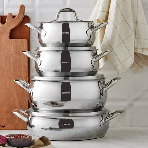 Karaca Etiler Stainless Steel 8-Piece Induction Cookware Set, Silver