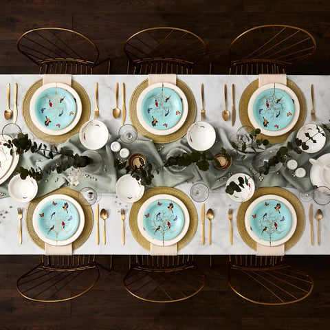 Karaca Fine Pearl Grace 58-Piece Dinner Set for 12 People, Mint Multi