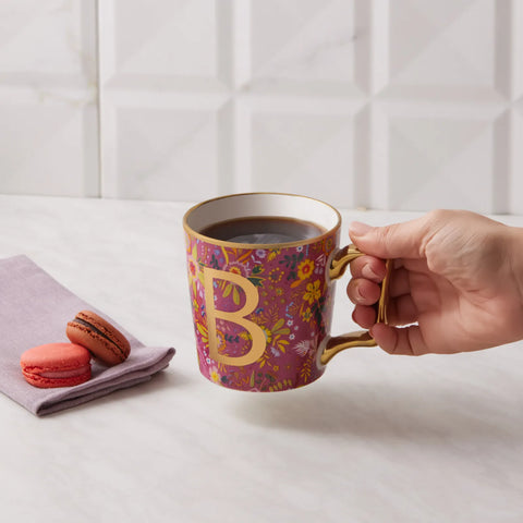 Karaca Flower Porcelain Letter B Mug, 350ml, Multi