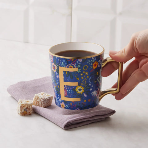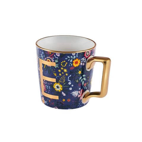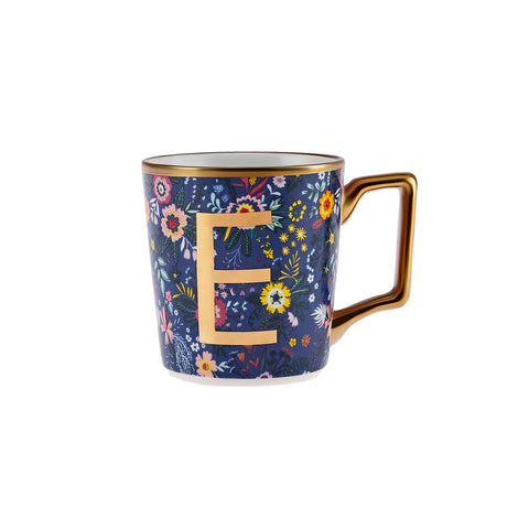 Karaca Flower Porcelain Letter E Mug, 350ml, Multi