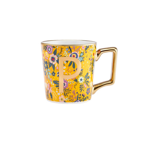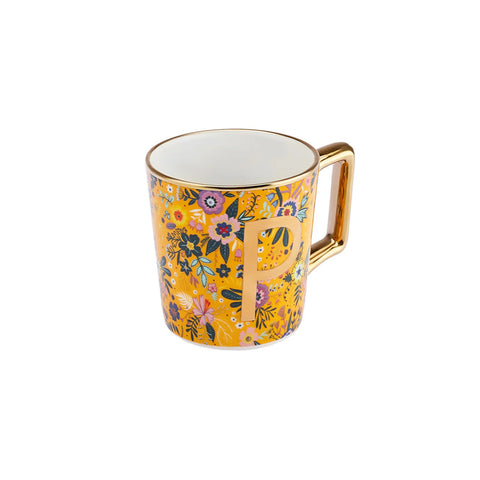 Karaca Flower Porcelain Letter P Mug, 350ml, Multi